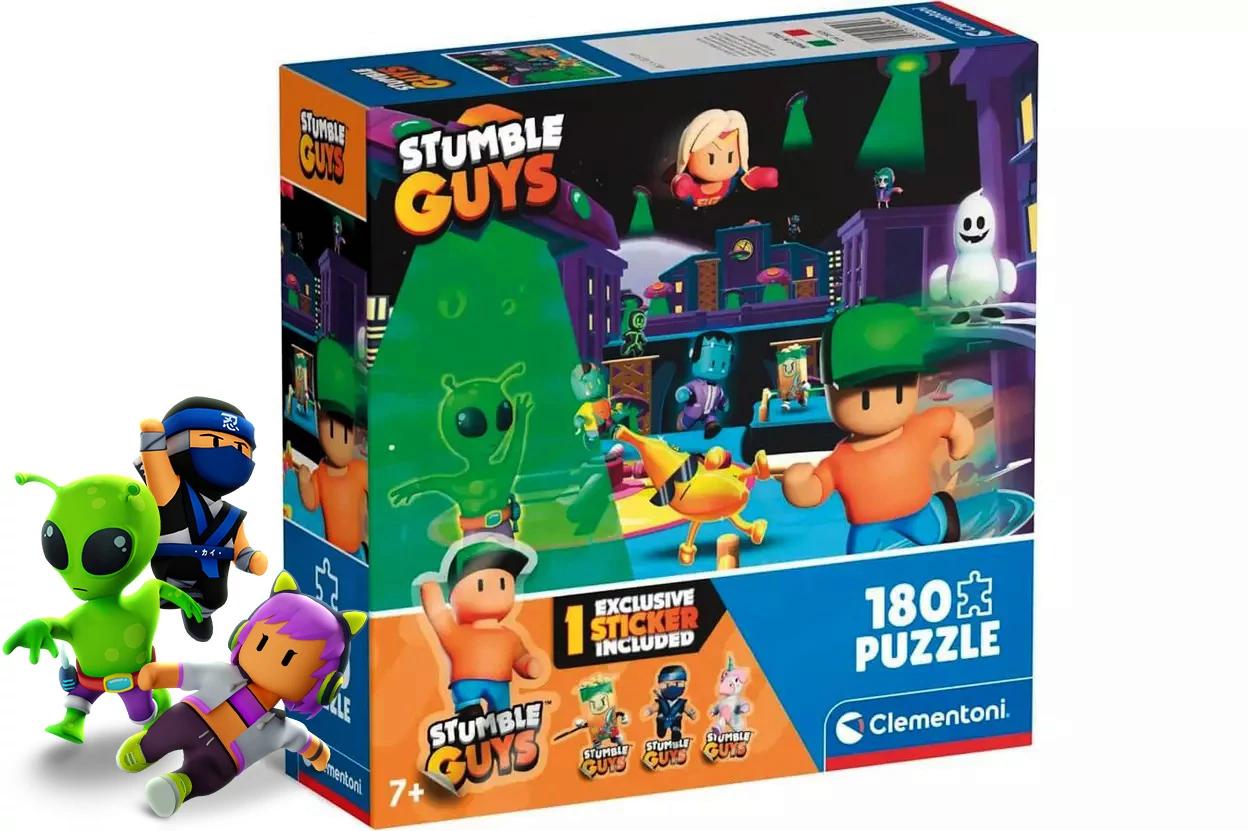 Végre nem csak a telefonon vagy PC-n lehetnek veled kedvenc Stumble Guys karaktereid. Itt ez a szuper Clementoni 180 darabos puzzle, melyben találsz egy  exkluzív meglepetés matricát is. Szuper ajándék minden Stumble Guys rajongónak! Gyűjtsd össze mindegyiket!
