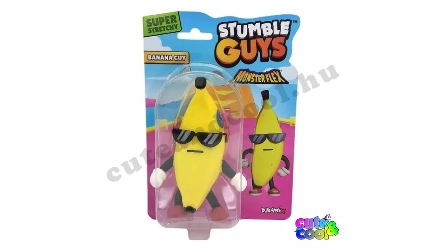 Húzd, nyújtsd, rángasd! Akár 50 cm-re is kinyújtható gumi anyagú Stumbl Guys figurák érkeztek! A strapabíró, erős figurák tökéletes másai a Stumble Guys játékvilág karaktereinek, vagy más néven Skin-jeinek. A gumi tartós anyagának köszönhetően hosszú távon is kitartó társ lesz minden kalandban. Kézizmokat, finommotorikát és szem-kéz koordinációt fejlesztve játszva tanulhatnak a gyermekek. Remek stresszlevezőtenk is bizonyúlhat és nem kell izgulni, hogy eltörik vagy koszos lesz hiszen törhetetlen és könnyedén tisztítható. Mérete tökéletes, hogy bárhová magával vihesse kis kedvencét. Ez a karakter Banana Guy, a vagány napszemcsis banán, aki lazán keresztül megy minden akadályon! Tiéd lehet vele az összes korona! Szuper ajándék minden Stumble Guys rajongónak, gamernek!