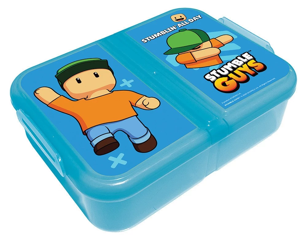 Végre nem csak a telefonon vagy PC-n lehetnek veled kedvenc Stumble Guys karaktereid, hanem ebben apraktikus uzsonnásdoboz formájában is. Mennyivel könnyebb az iskolakezdés, ha a kedvenc játékod szereplői is elkísérnek. Ha gyermeked imádja a Stumble Guys játékot, ez a színes és vidám mintás uzsidoboz garantáltan a kedvence lesz! A doboz több rekesszelrendelkezik, így az uzsonnának és egy kis nasinak is jut hely.
