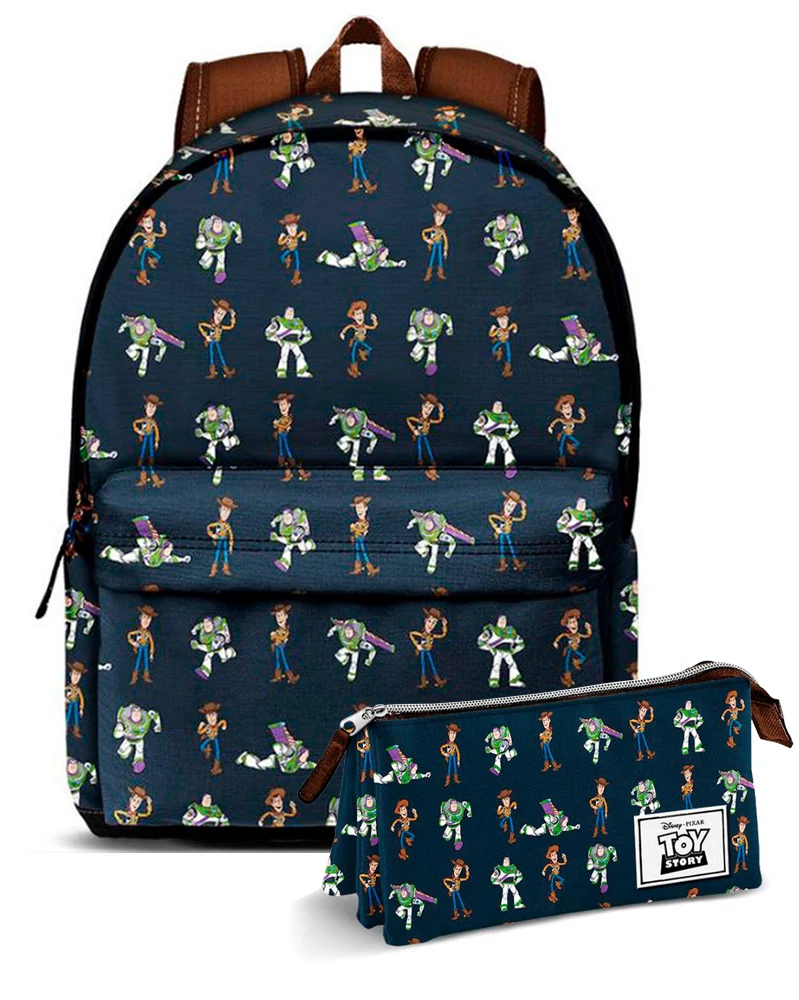 - 2 pieces Toy-Story school bag set - including: backpack, pensil pouch - premium quality - massive, durable, reliable - large backpack: 2 zipped comparments, 2 inside pockets, adjustable spongy shoulder straps, ergonomic spongy backrest - built-in USB charge (not including powerbank) - featuring Woody and Buzz Lightyear along official Toy Story logo - two zipped compartments pensil pouch - color: dark blue