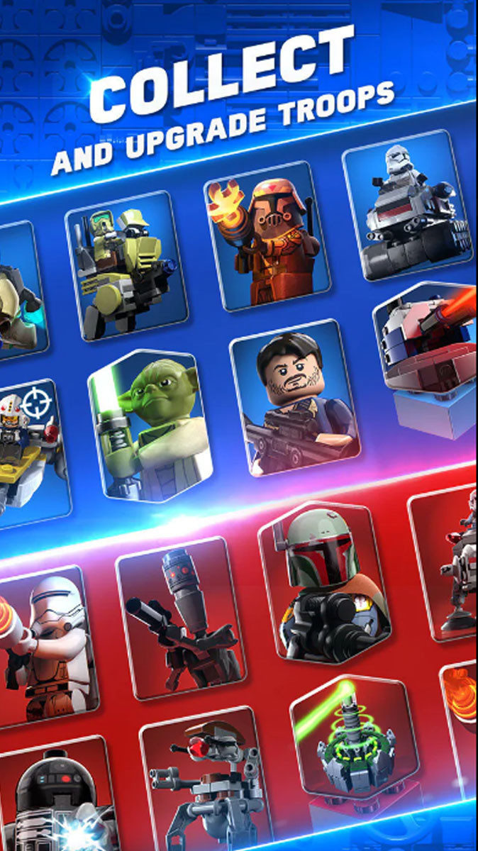 A Star Wars világából jól ismert ikonikus helyszínein, az általad összegyűjtött Star Wars karakterekkel győzheted le az ellenségeid akár a világos vagy a sötét oldalon állva, mindezt LEGO kinézetben. Az arénában megfelelő stratégiával, LEGO tornyok építésével érheted el győzelmed! Rengeteg jól ismert alakkal harcolhatsz, rohamosztagosokon át az ewokokon keresztűl akár DARTH VADER-t is megszerezheted!