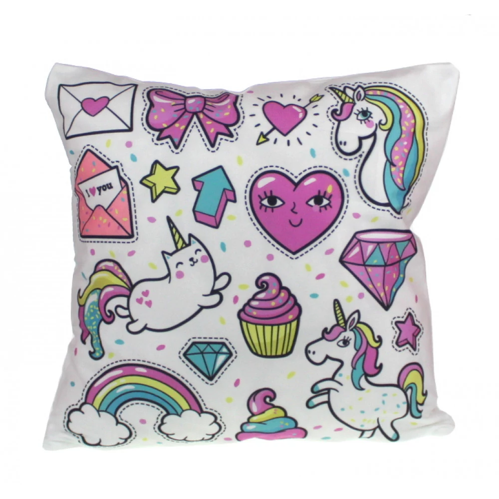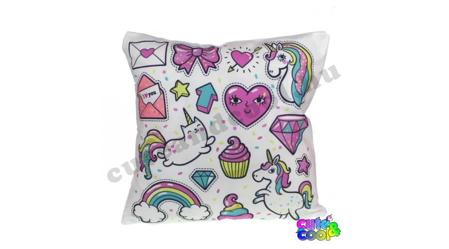 Vidám, színes Unikornis mintás puha, kellemes tapintású párnahuzat, cipzáras. Tökéletes választás alváshoz, vagy dekorációnak.