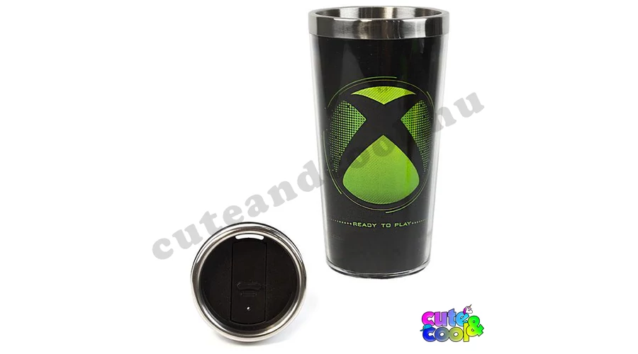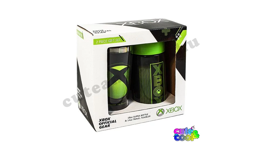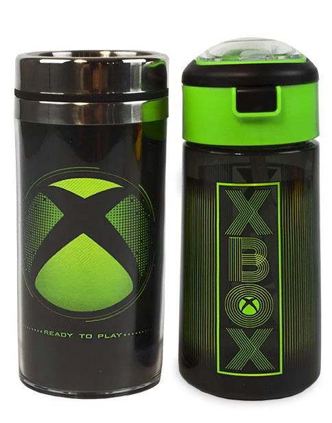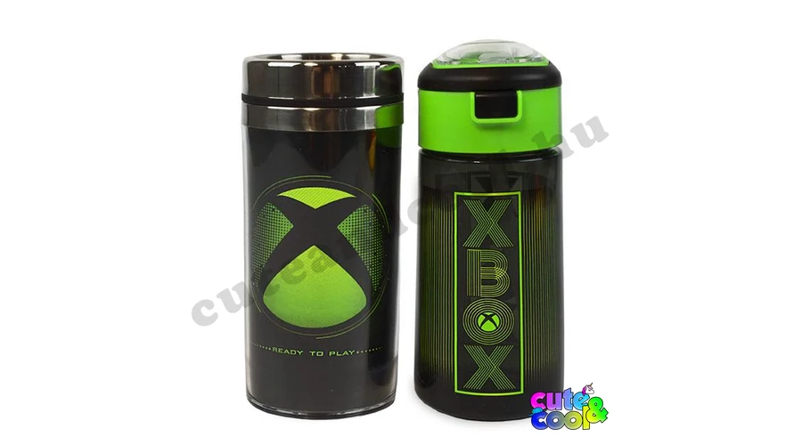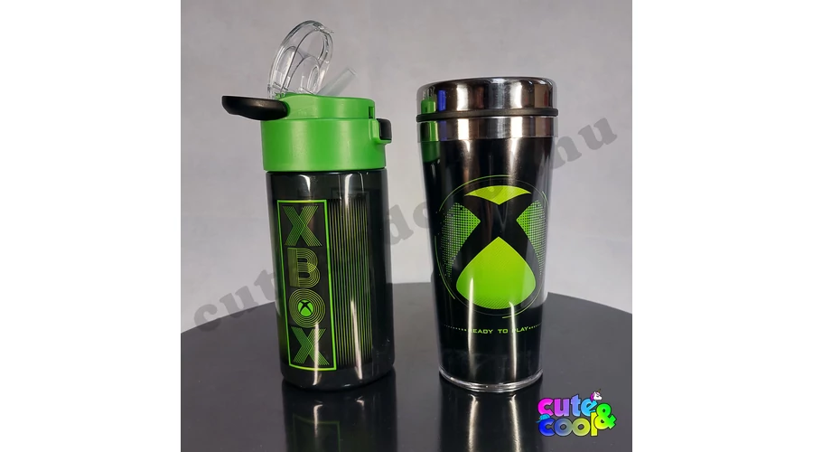 XBOX kulacs és utazó bögre szett. A kulacs csöpögésmentes zárral zárható, mérete nagy, 511ml-es, stílusos XBOX felirattal. Tökéletes iskolába az űrtartalma, minősége miatt is! XBOX utazó bögre az XBOX logójával. Masszív és visszazárható bögre szuper választás egy lan partyra!